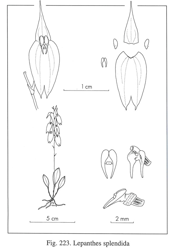 Lepanthes splendida Luer & Hirtz 1993 SECTION Lepanthes SUBSECTION Lepanthes SERIES Lepanthes Drawing by © Carl Luer and The Swiss Orchid Foundation at the Jany Renz Herbaria Website