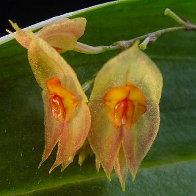 Found in Ecuador in cloud forests at elevations of 800 to 1000 meters as a miniature sized, warm growing epiphyte with erect, slender ramicauls enveloped by 5 to 9, dark brown, minutely ciliate, lepanthiform sheaths and carrying a single, apical, erect, coriaceous, ellitpic, subacute, cuneate below into the petiolate base leaf that blooms in the spring through summer on a very congested, long pedunculate, 1" [2.5 cm] long, disitchous, successively many flowered inflorescence with echinate shorter than the pedicel floral bracts.