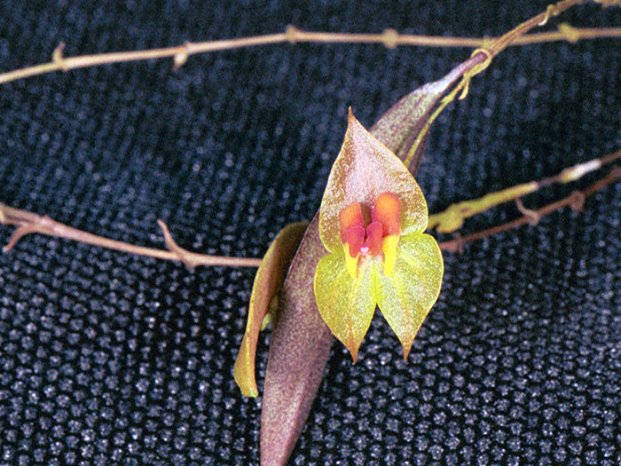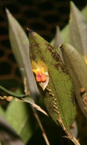 Found in southern Mexico, Belize, Guatemala, El Salvador and Venezuela at elevations of 1350 to 1600 meters as a miniature sized, warm to cool growing epiphytic orchid with ascending, arching or erect, slender ramicauls enveloped completely by 4 to 7 lepanthiform sheaths and carrying a single, apical, elliptic, narrowly elliptic or lanceolate, coriaceous, tridenticulate apically, gradually narrows below into the short petiolate base leaf and blooms in the spring and fall on 1 to 6 per ramicaul, only one flowering at a time, shorter than the leaf to 3/4" [1.9 cm] long, subdistichous, racemose, successively single flowered inflorescence arising on the top of the leaf with 2 to 4 flowers occuring in the spring and fall.