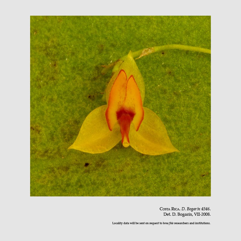 References W3 Tropicos, Kew Monocot list , IPNI ; Lankester's Epidendra Website CR ; *Lindleyana 10: 170. 1995 Luer drawing fide; Manual de Plantas de Costa Rica Vol 3 Hammel, Grayum, Herrera and Zamora 2003; Vanishing Beauty; Native Costa Rican Orchids Vol 2 Lacaena to Pteroglossa Pupulin 2020 photo fide; .
