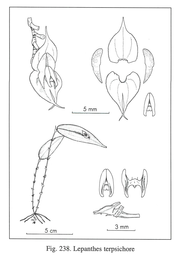 References W3 Tropicos, Kew Monocot list , IPNI ; *Icones Pleurothallidinarum Vol XIV Systematics of Draconanthes, Lepanthes subgenus Marsipanthes and subgenus Lepanthes of Ecuador Luer 1996 drawing fide; Flora of Ecuador No 88 Lepanthes and affiliates Dodson & Luer 2011 drawing fide