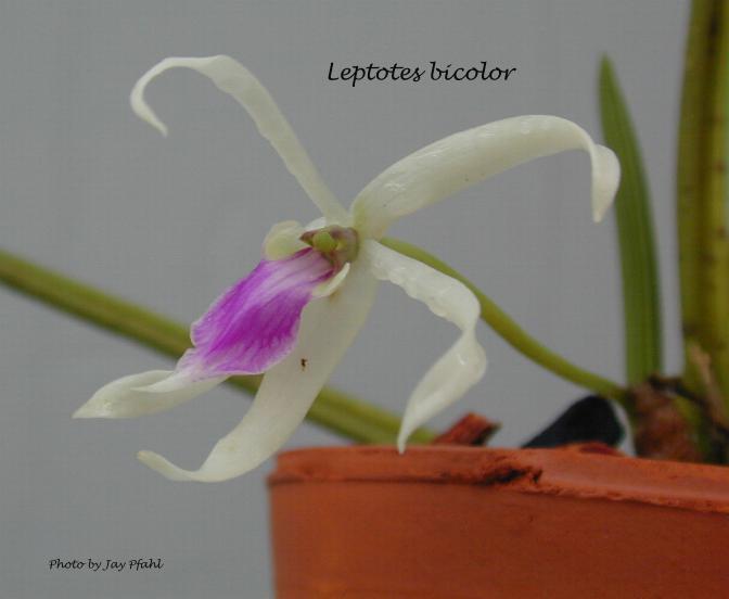 Synonyms Bletia bicolor Rchb.f ?; Leptotes bicolor var. glaucophylla Hook. 1839; Leptotes glaucophylla Hoffmannsegg 1843; Leptotes serrulata Lindl. 1838; Tetramicra bicolor [Lindley] Benth. 1883; Tetramicra serrulata Nichols 1887