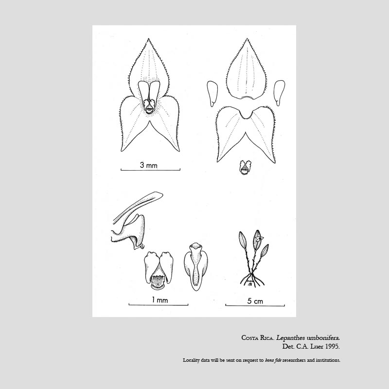 References W3 Tropicos, Kew Monocot list , IPNI ; *Lindleyana 10: 173. 1995 Endres ex Luer drawing fide; Manual de Plantas de Costa Rica Vol 3 Hammel, Grayum, Herrera and Zamora 2003; Vanishing Beauty, Native Costa Rican Orchids Vol 2 Lacaena to Pteroglossa Pg 449 Pupulin 2020