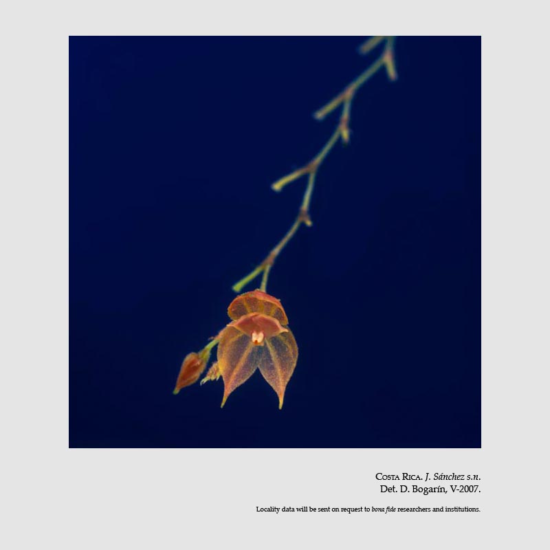 Found in Cartago province of Costa Rica on the Cordillera de Talamanca’s northernmost range in lower montane rain forest, epiphytic in secondary mature vegetation with remnants of primary vegetation at elevations around 2750 to 2850 meters as a mini-miniature sized, cold growing, caespitose epiphyte that blooms in the fall