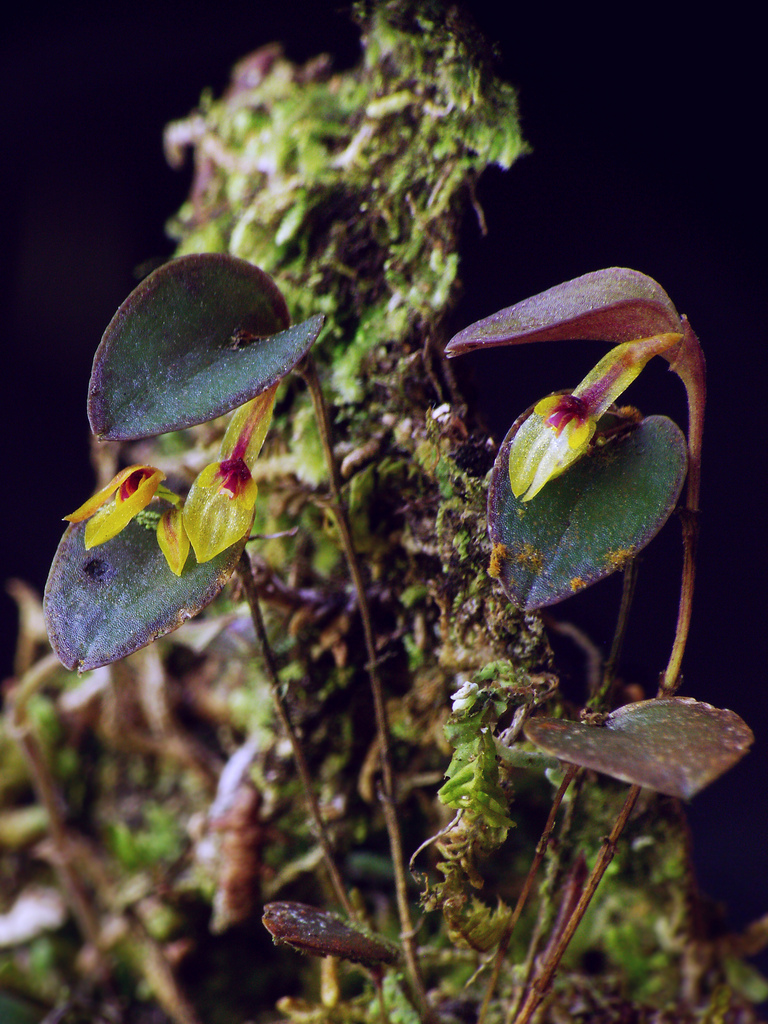 Found in Costa Rica at elevations around 2400 meters as a mini-miniature sized, cold growing epiphyte with erect, slender ramicauls enveloped by 4 to 6, minutely ciliate, lepanthiform sheaths and carrying a single, apical, erect, coriaceous, puepl suffused beneath, elliptic, obtuse, broadly cuneate below into the petiolate base leaf that blooms in the summer and winter on a filiform, congested, distichous, .32" [8mm] long, successively flowered inflorescence arising on top of hte leaf
