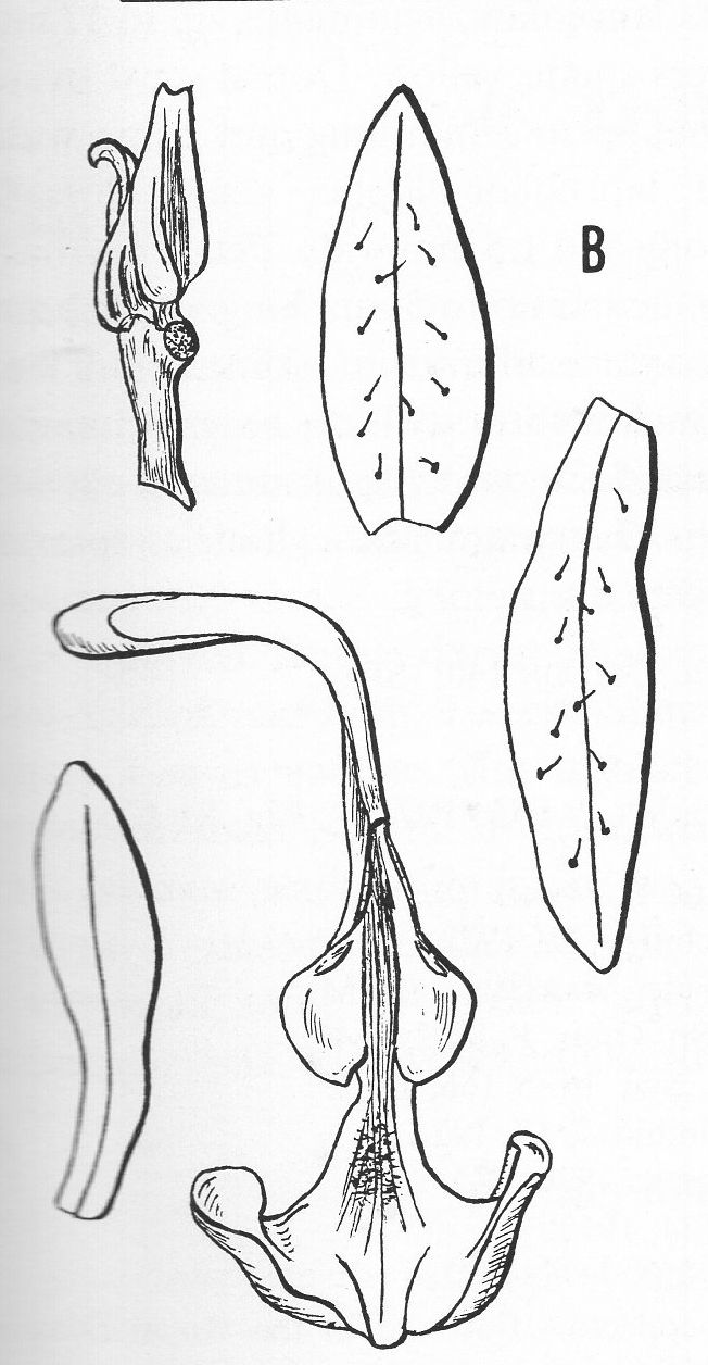 Found in Zamora-Chinchipe Ecuador at elevations of 1000 to 1400 meters as a medium sized, cool growing terrestrial with a decumbent rhizome giving rise to an at first ascending, then erec stem carrying many, quite approximate, lanceolate to narrowly ovate-lanceolate, acuminate, gradually tapering below into the subpetiolate base leaves that blooms on an erect, peduncle puberulent, subequal to shorter than the uppermost leaf, to 4" [10 cm] long, rachis cylindrical, to 7.2" [18 cm] long, densely many flowered inflorescence with lanceolate, acuminate, decreasing in size upwards floral bracts and carrying small, yellow flowers.
