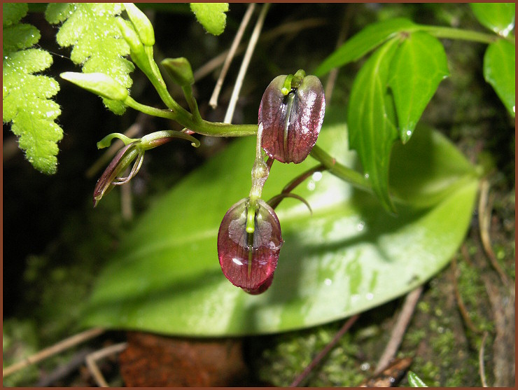 CAUTION!!!!!! I am more than apprehensive with the ID of the flower closeup and in situ photo by Edouard Farria as the leaf is definitely not cordate, nor undulate on the margins and there are no lateral sepals visible, not is the lip conduplicate. I cannot be sure that the drawing is correct either as I have not seen the type publication by Charles Schweinfurth. The in situ photo from Morelos is more correct but there is no detail to the flowers.