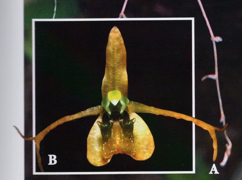Found in Chongking and Yunnan provinces of China as wqell as Bhutan on slightly sunny limestone rocks in evergreen broad-leaved forests or on trees in forests at elevations around 1200 to 1600 meters as a mini-miniature sized, cool growing epiphyte or lithophyte with close set, cylindrical pseudobulbs carrying 3 to 4, articulate, narrowly obovate to oblanceolate-oblong, crisped margins, apically rounded and mucronate, narrowing below into the petiolate base leaf that blooms on an erect, nearly wingless, 2 to 2.8" [5 to 7 cm] long, several to 10 flowered inflorescence with green, ovate-lanceolate floral bracts carrying yellow flowers.