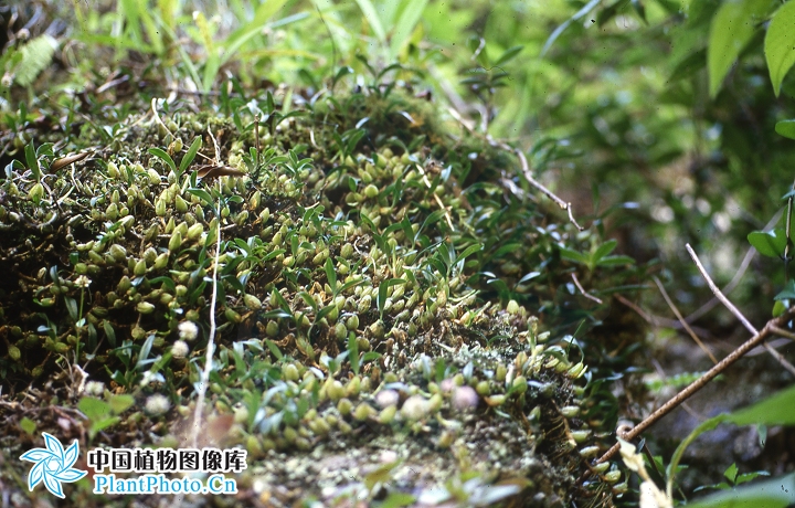 Found in north Fujian, north and central Guangxi, central and east Guizhou, Jiangxi, southwest Sichuan and Zhejang provinces of China in forests and on rocks along valleys as a mini-miniature sized, warm to cool growing terrsetrial or lithophyte with somewhat densely arranged, ovoid pseudobulbs carrying a single apical, erect, papery, oblanceolate-oblong to suboblong, acuminate, gradually narrowing below into the petiolate base leaf that blooms in the earlier fall on a slightly compressed, very narrowly winged, 1.6 to 3.2" [4 to 8 cm] long, several flowered inflorescence with narrowly lanceolate floral bracts.
