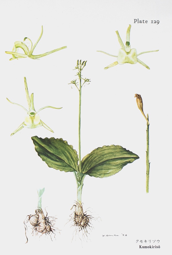 Found in Russia, the Chinese Himalayas, Japan and Korea as a terrestrial with an erect, cylindrical stem carrying 2, broadly ovate, plicate, undulate margin, acute, narrowing below into the base leaves that blooms on an erect, terminal, few to several flowered inflorescence