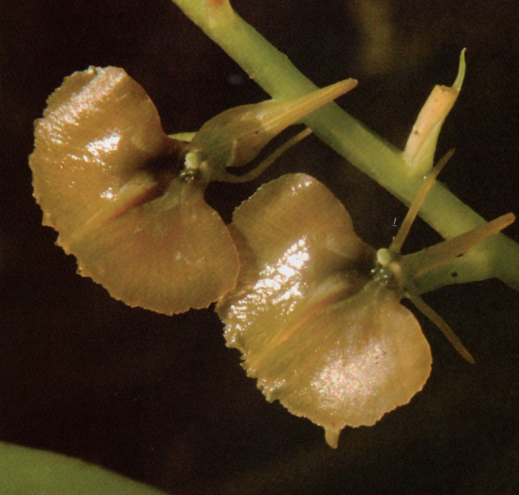 Found in Yunnan province of China and north Vietnam on trees or rocks along valleys at elevations around 1200 to 1800 meters as a small sized, cool growing epiphyte or lithophyte with close set,narrowly ovoid to narrowly ovoid-cylindric pseudobulbs carrying 2, membraneous, articulate, oblanceolate to linear-oblanceolate, acuminate, narrowing below into the petiolate base leaf that blooms in the fall and winter on an erect, often more or less narrowly winged, 8 to 14" [35 cm] long, 10 to many flowered inflorescence with narrowly lanceolate floral bracts.