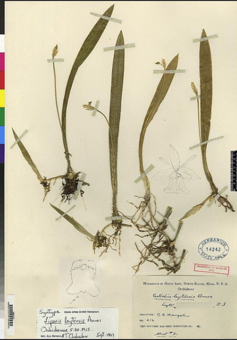Liparis leytensis Ames 1915 SUBGENUS Cestichis SECTION Distichae Collection sheet and Drawing by © Ames and The Swiss Orchid Foundation at the Jany Renz Herbaria Website