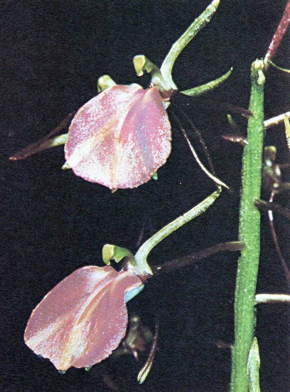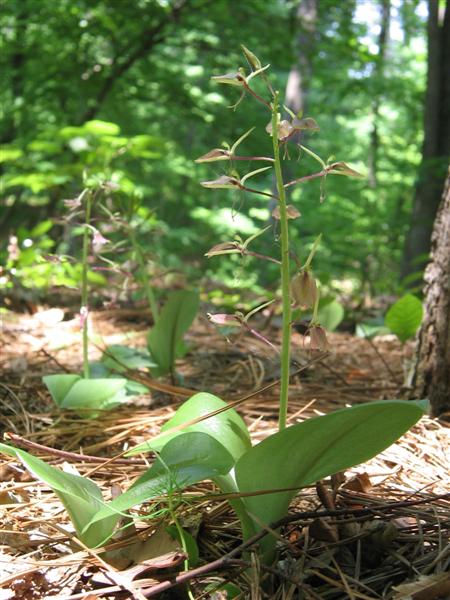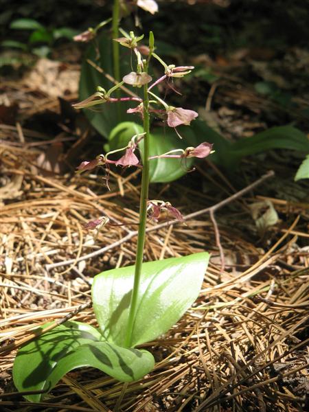 Found from eastern Canada south to northern Alabama, Missippi, Arkansas and north to Minnesota and Wisconson in open woodlands, ravines and on the banks of woodland streams as a miniature to small sized, cold growing terrestrial orchid with an ovoid pseudobulb completely enveloped by dry sheaths and carrying 2 basal, glabrous, glossy green, elliptical, acute leaves that blooms in the spring and summer on a terminal, erect, to 10" [to 25 cm] long, laxly many flowered racemose inflorescence.