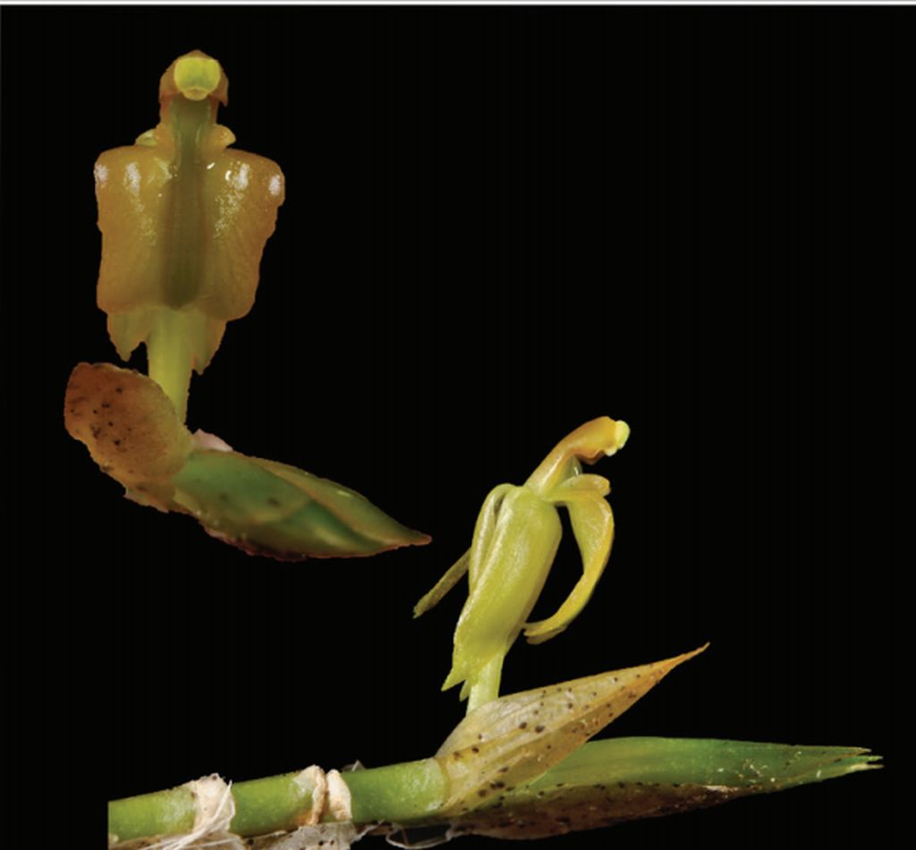 Found in the Philippines in mossy montane forests at elevations of 300 to 2900 meters as a small sized, warm to cold growing epiphyte with 2" [5 cm] between each small, conical pseudobulbs carrying a single, apical, erect, linear to narrowly oblong, gradually tapering at both ends, deciduous, acute leaf that blooms in the winter and spring on a terminal, erect, flattened, strongly winged, to 10" [to 25 cm] long, successively single, several flowered inflorescence