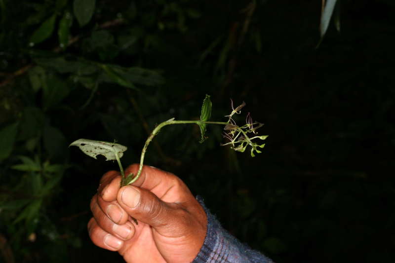Found in Venezuela, Peru and Bolivia in wet cloud forests at elevations around 2500 to 2700 meters as a mini-miniature to miniature sized, cold growing terrestrial with a long rhizome giving rise to a recumbent to ascending stem with inconspicous, well spaced or without pseudobulbs and carrying membraneous, narrowly ovate, to suborbicular, acute to shortly acuminate, deeply cordate, petilalte base leaves that blooms in the summer on a terminal, racemose, peduncle, angled,rachis .4 to 2" [1 to 5 cm] long, subdense to dense, several to many flowered inflorescence with narrrowly lanceolate to triangular lanceolate, acuminate, shorter than the ovary floral bracts .