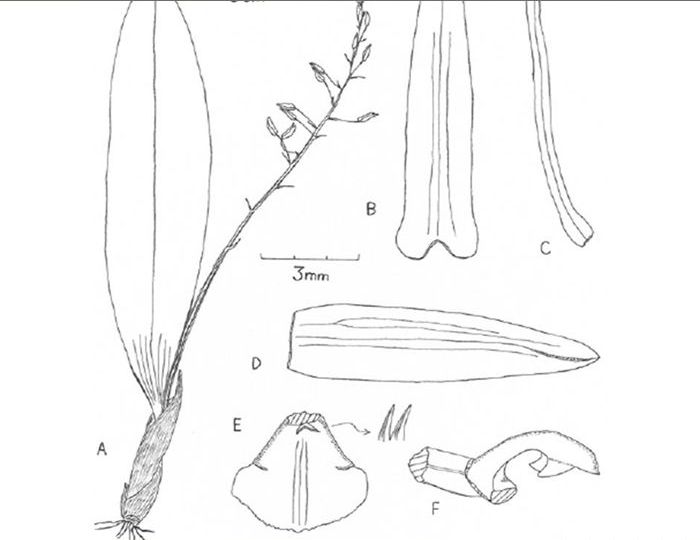 *"This species is related to L. bootanensis Griff. from which it may be recognized externally by its relatively broader leaves 1.36 to 1.76" vs 44 to 1.32" (3.4-4.4 vs. 1.1-3.3 cm) and labellum which has a callus with .narrowly conical lobes (not with half disc-shaped to flattened finger-shaped lobes of the callus). The labellum also differs in being broadly obovate (rather than oblong-obcuneate) and broadly rounded (not more or less truncate)"