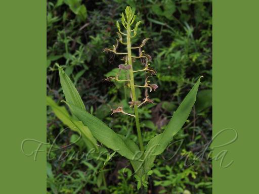 Found in Pakistan, the western Himalayas, the Chinese Himalayas, Bhutan and Nepal in forest along valleys on soil covered rocks at elevations of 1500 to 2700 meters as a small sized, cool to cold growing terrestrial with tufted pseudobulbs carrying 2, opposite, elliptic to ovate, veined, narrowing below into the elongate, petiolate base leaves that blooms in the early summer on a 6 to 8" [15 to 20 cm] long, laxly several flowered inflorescence