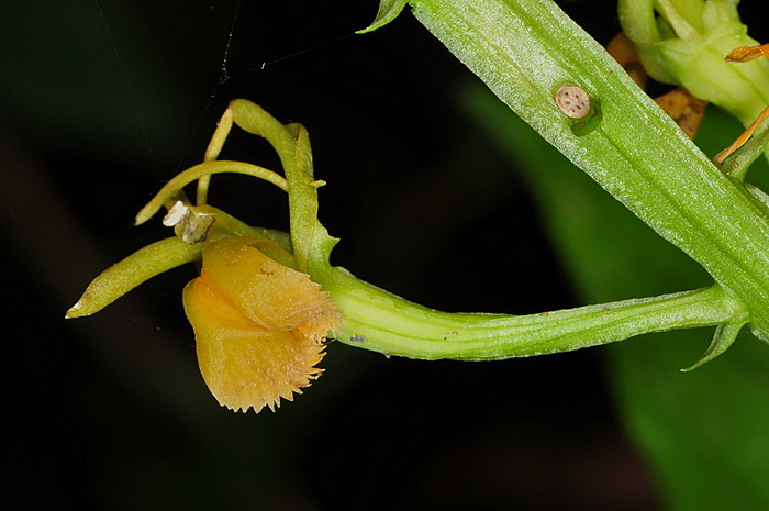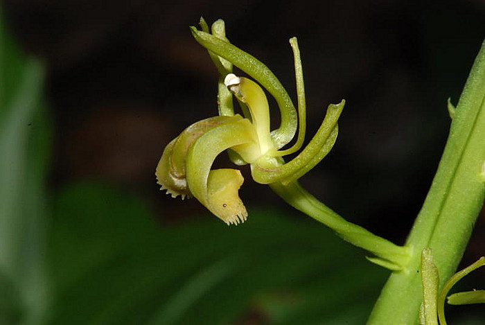Found in southern Guizhou province of China to Vietnam, and Taiwan in broad leaved forests at elevations of 500 to 1500 meters as a small to medium sized, warm to cool growing terrestrial with cylindric, stout, thick, fleshy, many noded stem carrying several, amplexicaul, not articulate, acuminate apically, contracted below into the petiolate base leaves that blooms in the spring on a distinctly ridged, 8 to 12" [20 to 30 cm] long, 5 to 15 flowered inflorescence with green, ovate floral bracts.