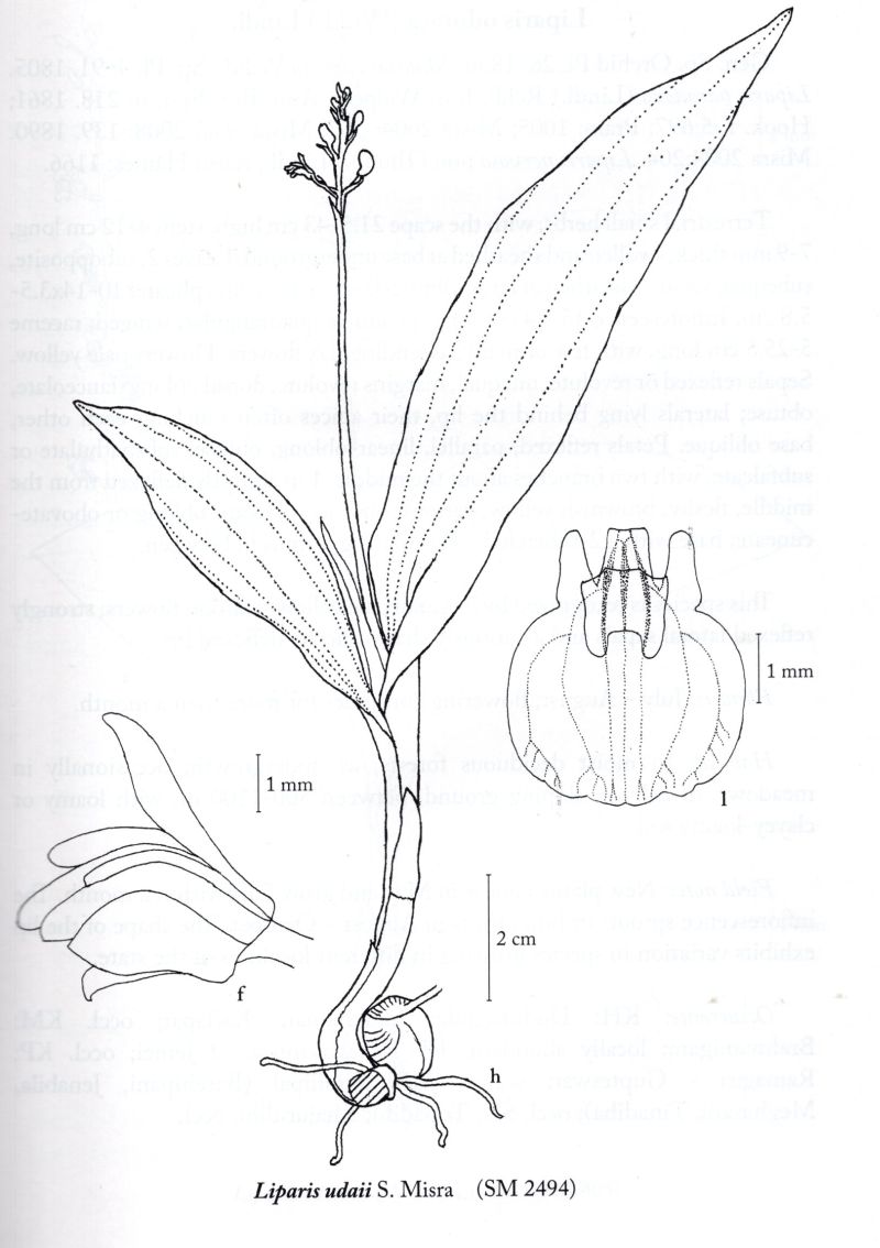 Similar to L odorata but L udaii differs in being a much shorter plant, a shorter very slender inflorescence carrying a few very small flowers and the lip is quadrate-suborbicular with 2 auricles at the base.