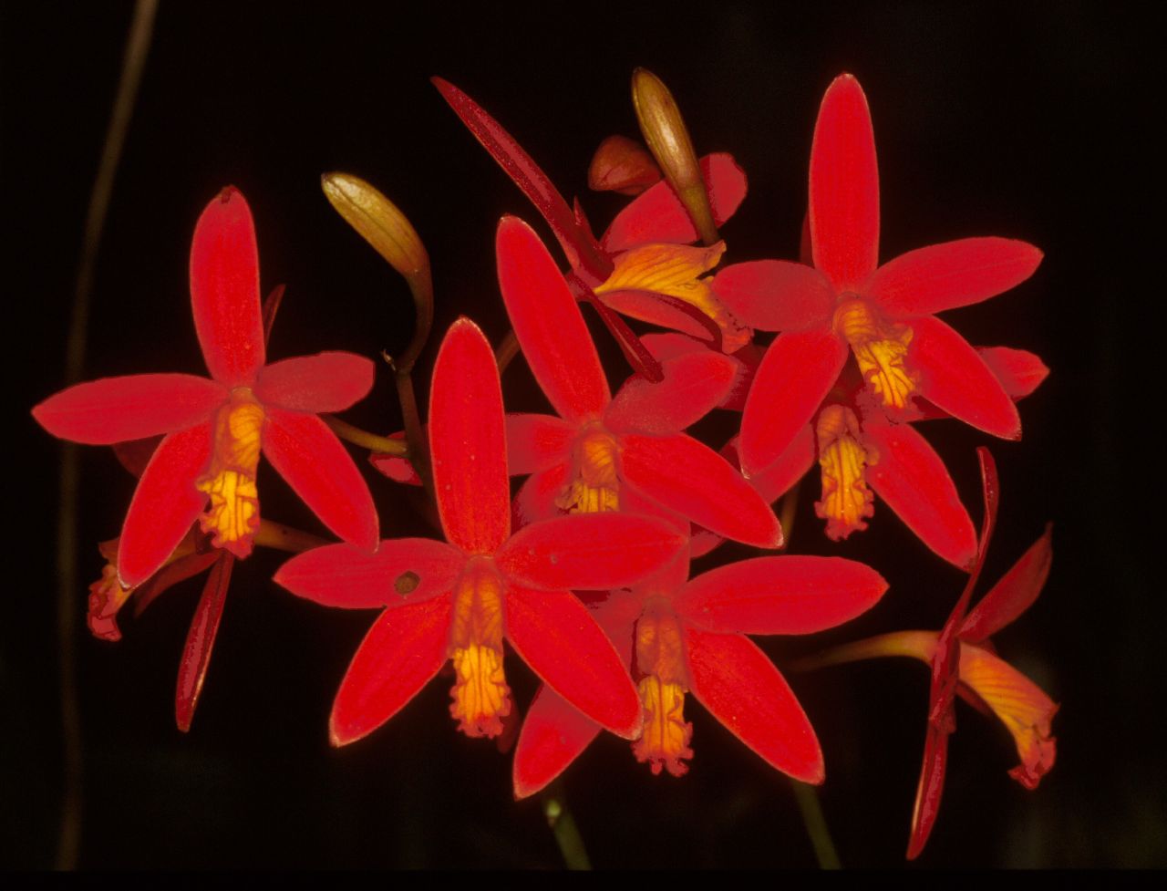 Found in Minas Gerais state of Brazil on iron ore outcroppings or on the base of Vellozia shrubs at elevations of 800 to 1300 meters as a miniature sized, warm to cool growing "rupicolous" lithophyte with clustered, flask shaped pseudobulbs carrying a single, apical, ovate-oblong, acute, rigid, erect, dark green tinged with purple, keeled below leaf that blooms in the late spring and early summer on a erect, 12 to 18" [30 to 50 cm] long, several to many flowered, racemose inflorescence with successively opening flowers, held well above the leaves.