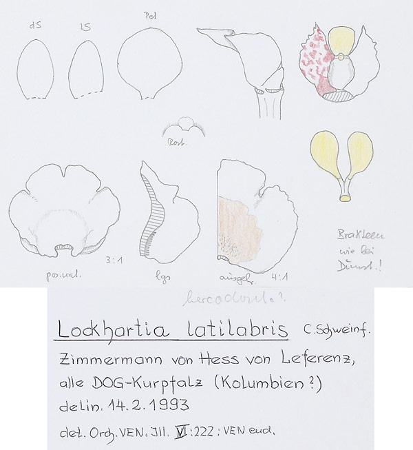 Lockhartia latilabris C.Schweinf. Drawing by © Karl Senghas and The Swiss Orchid Foundation at the Jany Renz Herbaria Website