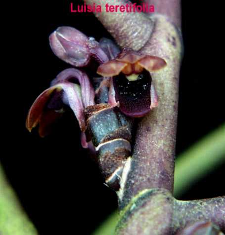 References W3 Tropicos, Kew Monocot list , IPNI ; Xenia Orchidaceae Rchb.f 1854 as Luisia zeylanica; Xenia Orchidaceae Vol 3 Reichenbach 1890 as L teretifolia drawing; Orchids of Burma Grant 1895/1995; The Orchids of Sikkim-Himalaya Part 1 King & Pantling 1898 as L teretifolia drawing hmm; Die Orchideen Von Java J.J.Sm. 1905 as L teretifolia; The Orchids of North-Western Himalaya Vol IX Part II Duthie 1906 as L teretifolia ; Die Orchideen Von Java Figuren Atlas J.J.Smith 1908 as L teretifolia drawing fide; Orchidaceae of German New Guinea Schlechter 1913[1985] as Luisia beccarii drawing ; Die Orchideen Schlechter 1915 as L zeylandica; Encyclopedia of Cultivated Orchids Hawkes 1965 as L teretifolia; Encyclopedia of Cultivated Orchids Hawkes 1965 as L zeylanica; AOS Bulletin Vol 35 No 4 1966 as L teretifolia; Botanisk Tidsskrift bd 68 hft 1 Contributions to the Orchid Flora of Thailand V Seidedenfaden 1973 drawing fide; Flore de la Nouvelle-Caledonie et Dependences Vol 8 Orchidaceae Halle 1977 sa L teretifolia drawing fide; The Orchids of Papua New Guinea An Introduction Millar 1978 as L teretifolia photo fide; Indian Orchids: A Guide to Identification and Culture Vol 2 Pradhan 1979 as L birchea drawing ok; Indian Orchids: A Guide to Identification and Culture Vol 2 Pradhan 1979 as L zeylandica drawing ok; Indian Orchids: A Guide to Identification and Culture Vol 2 Pradhan 1979; The Complete Writings on Philippine Orchids Vol 1 Quisumbing 1981 as L teretifolia; A Revised Handbook to the Flora of Ceylon Vol 2 Dassanayake & Fosberg 1981 as L teretifolia not drawing fide; Orchidiana Philipiniana Vol 1 Valmayor 1984 as L teretifolia; Orchids of Nilgiris Joseph 1987 as L zeylanica drawing fide; Orchids of Nilgiris Joseph 1987 as L birchea drawing hmm; Rudolf Schlechter Die Orchideen Band 1B lieferung 19/20 1129 - 1264 Brieger 1988 as L teretifolia drawing fide/photo good; Rudolf Schlechter Die Orchideen Band 1B lieferung 19/20 1129 - 1264 Brieger 1988 as L zeylandica; Rudolf Schlechter Die Orchideen Band 1B lieferung 19/20 1129 - 1264 Brieger 1988 as L bircheaOpera Botanica #95 Seidenfaden 1988 as L platyglossa drawing/photo fide; The Orchids of Vanuatu Lewis & Cribb 1989 as L teretifolia; Orchids Travel By Air A Pictoral Safari Mulder, Mulder-Roelfsema and Schuiteman 1990 as L teretifolia photo fide; Orchids of Kumaun Himalayas Pangtey, Samant and Rawat 1991 as L zeylanica; The Orchids of the Solomon Islands and Bougainville Lewis & Cribb 1991 as L teretifolia; The Manual Of Cultivated Orchid Species Bechtel, Cribb & Launert 1992; Ferns and Orchids of the Mariana Islands Raulerson & Rinehart 1992 as L teretifolia photo fide; Identification of the Orchids [Orchidaceae Juss.] Vietnam Averyanov 1994 as L platyglossa; Lowland Orchids of of Papua New Guinea Peter O'Byrne 1994 as L teretifolia drawing/photo fide; Native Orchids of New Caledonia Societe' Neo-Caledonienne D' Orchidophile 1995 as L teretifolia photo fide; The Orchids of Samoa Cribb & Whistler 1996 as L teretifolia photo fide; Orchids of Papua New Guinea Millar 1999 as L teretifolia photo fide;Orchid Australia Vol 13 No 1 2001 photo as L teretifolia; Orchids of Sumatra Comber 2001 as L teretifolia photo fide; Beautiful Orchids of Nepal Rajbhandari & Bhattarai 2001 as L zeylandica; Lindleyana Vol 17 No 1 2002 as L teretifolia; Orchids of Bhutan Pearce & Cribb 2002 as Luisia birchea; Orchids of Bhutan Pearce & Cribb 2002 as Luisia zeylanicadrawing/photo ok; Flora Malesiana Orchids of the Philippines Vol I Agoo, Shuiteman and de Vogel 2003 as L teretifolia; Flora Malesiana Orchids of the Philippines Vol I Agoo, Shuiteman and de Vogel 2003 as L valida; A field Guide to the Wild Orchids of Thailand Vaddhanaphuti 2005 as L platyglossa photo hmm; Australian Orchid Review Vol 70 No 6 2005/6 as L teretifolia photo; Flora Malesiana Orchids of New Guinea Vol IV Shuiteman and de Vogel 2006 as Liparis tristis; Orchids of India A Glimpse Misra 2007 as L zeylanica drawing ok; Orchids of India A Glimpse Misra 2007 as L platyglossa; Orchids of India A Glimpse Misra 2007 as L teretifolia; Philippine Native Orchid Species Cootes 2011 as L teretifolia photo good; Genera Orchidacearum Vol 6 Epidendroideae Part 3 Pridgeon, Cribb Chase and Rasmussen 2014 photo good; Orchids of Odisha Misra 2014 drawing fide; LANKESTERIANA 15(1): 7—50. Jeewan Singh Jalal & J. Jayanthi 2015 photo fide; AOS Bulletin Vol 85 #3 2016 drawing fide;