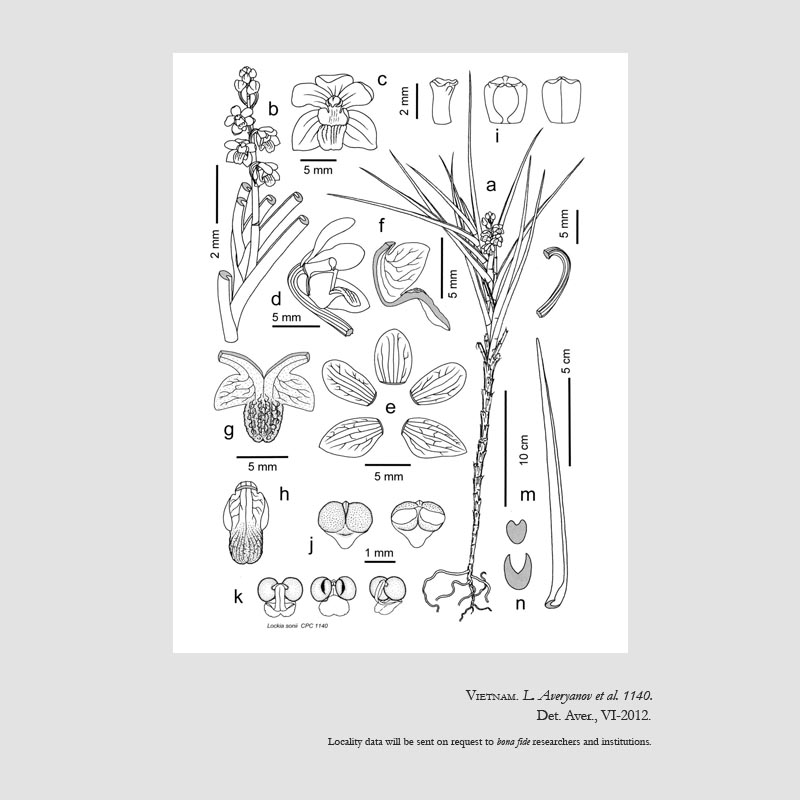References Lockia sonii Aver. 2012 W3 Tropicos, Kew Monocot list , IPNI ; AOS Bulletin Vol 81 #6 2012 as Lockia sonii photo fide; *Taiwania 63: 79 Kumar & Gale 2018