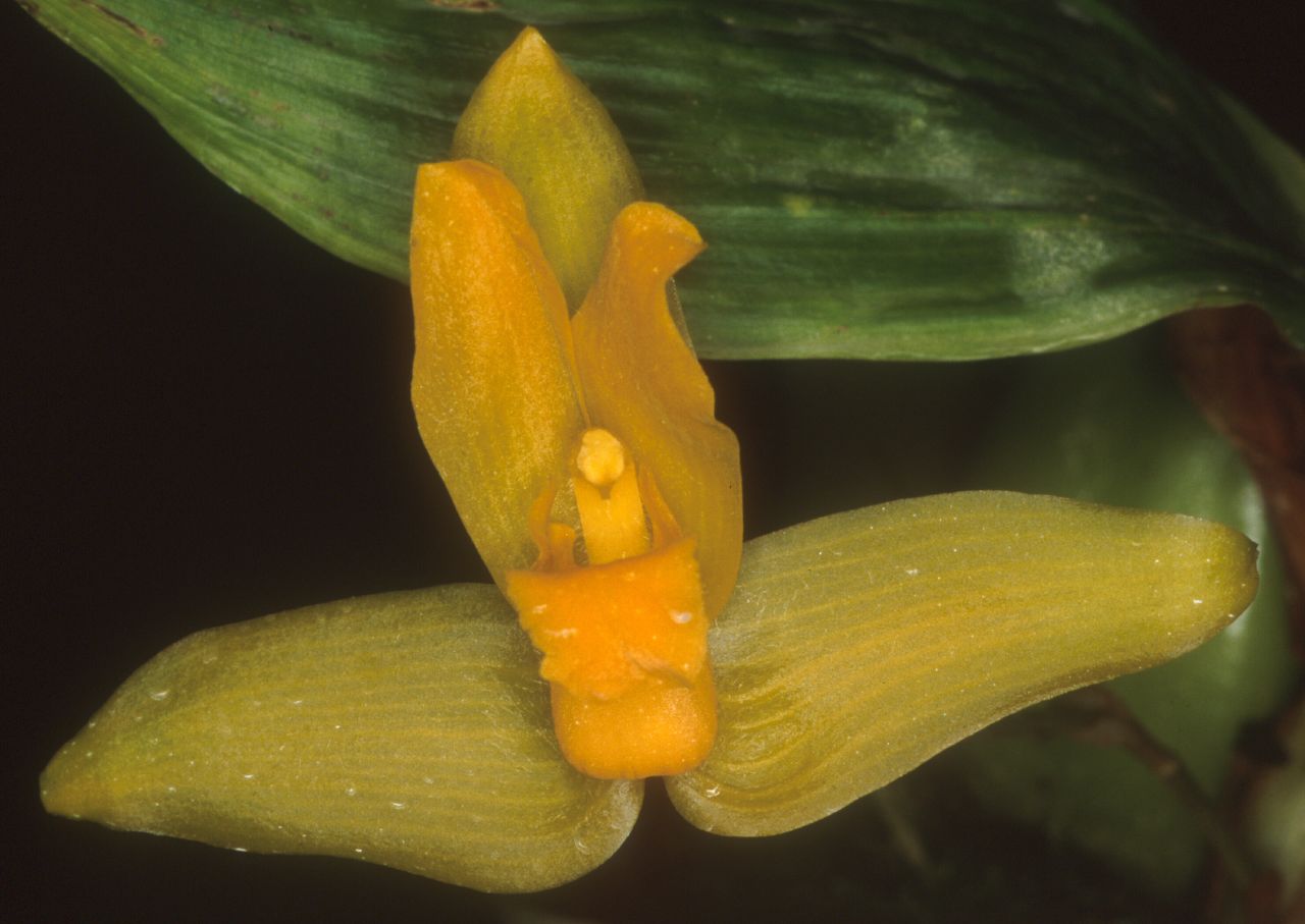 Found in Guatemala, El Salvador, Honduras, Nicaragua and Costa Rica in wet tropical forests in light shade as a medium to large sized, hot to warm growing epiphyte at elevations of 700 to 1250 meters with ovoid, flattened pseudobulbs with 2 short spines after leaf-fall and carrying 2 to 3, plicate, ribbed, elliptic, basally clasping, deciduous leaves and blooms in the late winter and spring after leaf-fall on an erect, 2 to 4" [5 to 10 cm] long, single flowered, short inflorescence arising on a mature leafless pseudobulb as the new growths appear and carries a flower that may smell of urine, lemon to vanilla.