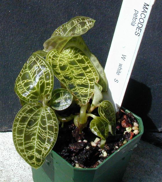 Synonyms Anoectochilus petola (Blume) Hereman 1868; Anoectochilus veitchianus Blume 1859; Anoectochilus veitchii B.S.Williams 1862; Argyrorchis javanica Blume 1859; Haemaria argyroneura Miq. 1864; Macodes argyroneura (Miq.) Rolfe 1896; Macodes javanica (Blume) Hook.f. 1889; Macodes petola var argenteo-reticulata J.J.Sm. 1905; Macodes petola var. cuprea Rob. 1864; Macodes petola var. latifolia Rob. 1864; Macodes petola var robusta J.J.Sm. 1905; Macodes petola var. superba Rob. 1864; Macodes petola var. velutina Rob. 1864; Macodes robusta J.J.Sm. 1921; Macodes veitchii Boxall 1880; Macodes xanthophyllus Boxall 1880; *Neottia petola Bl 1825; Rhomboda confusa Ormerod 1995; Spiranthes petola (Blume) Hassk. 1844