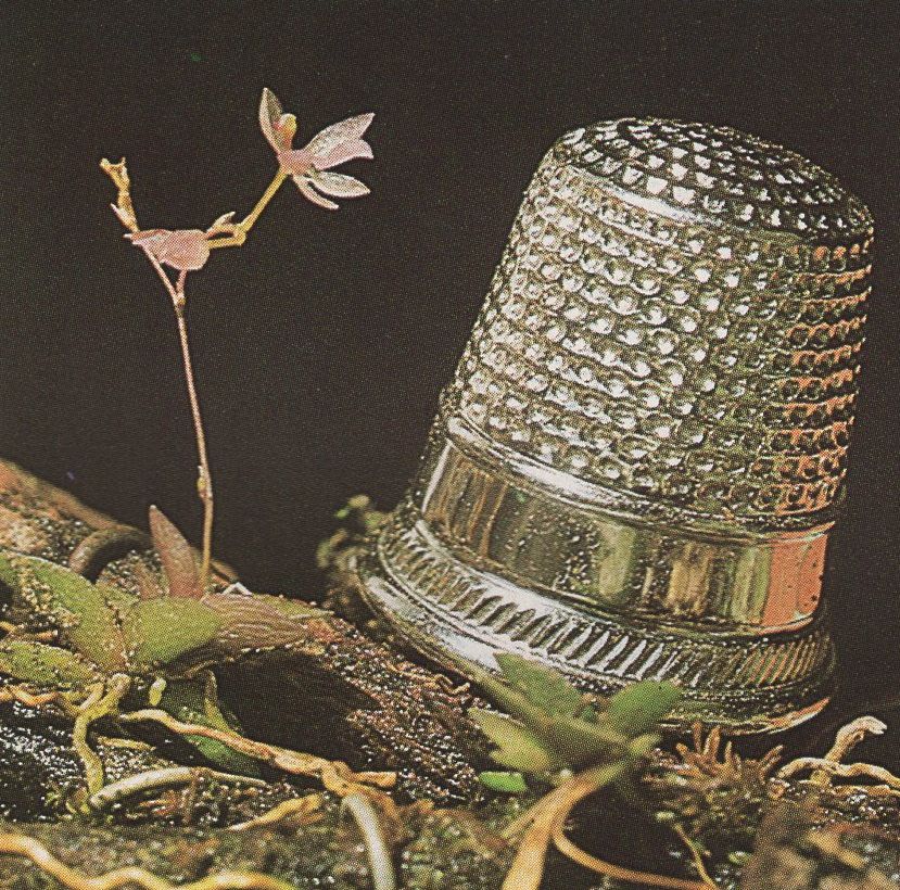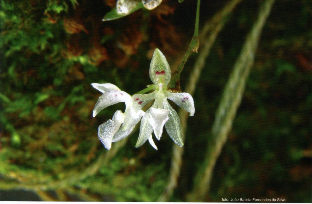 Found in Venezuela, Guyana, Surinam, Brazil and Peru at elevations around 100 meters as a mini-miniature sized, hot growing epiphyte with an abbreviated stem carrying equitant, closely imbricated, 2 to 3 on each side, obliquely linear-oblong, linear-lanceolate or elliptic-linear, commonly strongly falcate-recurved, acute to subobtuse, unjointed at base leaves that blooms on a filiform, erect to slightly arcuate, exceeding the leaves, paniculate, 1 to 1.4" [2.5 to 3.5 cm] long, 1 to few flowered inflorescence with minute, ovate, concave floral bracts. .