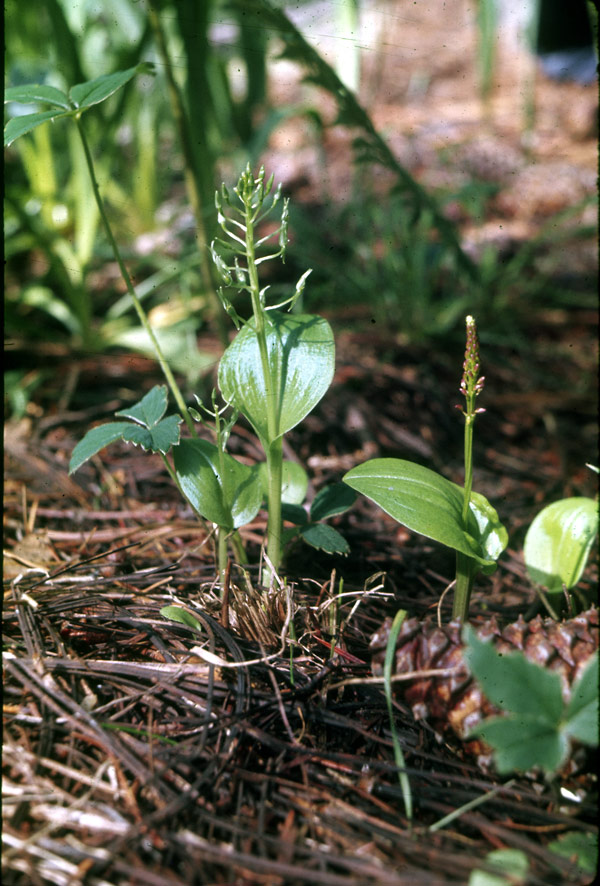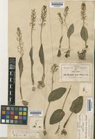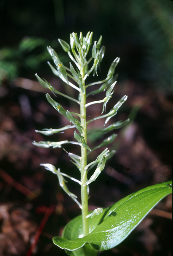 Found in Arizona, New Mexico, and Baja, Chihuahua, Jalisco, Michoacan, Mexico, Morales, Hidalgo and Oaxaca states of Mexico in cloud forests at elevations around 2500 to 3000 meters as a medium sized, cold growing terrestrial with an ovoid-pyriform, ovate to ovate-elliptic, obtuse, abruptly narrowing into the round then elongate petillate base leaf that blooms in the summer and earlier fall on an erect, terminal, racemose, 4.4" [to 11 cm] long, lax, successively several, many flowered inflorescence with very extended, green, broadly ovate, conduplicate-concave, acute floral bracts and carrying slighly sticky non-resupinate flowers