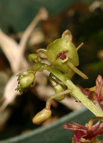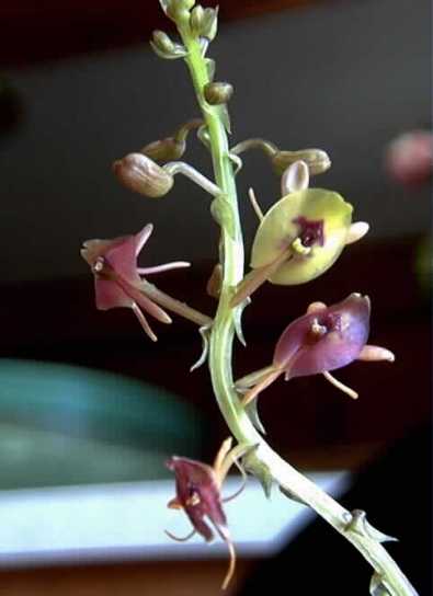 Found in Assam India, Bangladesh, eastern Himalayas, Lower India, Nepal, western Himalayas, Bhutan, Andaman Islands, Myanmar, Thailand, Malaysia, Laos, Cambodia, China, Vietnam, Java, Sumatra, The Philippines, and Northern Territories Australia in lowland evergreen broadleaf forests at elevations of sealevel to 2300 meters as a small to medium sized, hot to cold growing terrestrial or lithophytic orchid on highly eroded, stratified limestone cliffs and bluffs with horizontal rhizomes gibving rise to rather thin, short stems, each bearing 3 to 5 , broadly lanceolate, acuminate and acute, leaves that blooms in the winter, spring, summer and fall on an erect, 4 to 12" [10 to 30 cm] long, several to many [30] flowered inflorescence with lanceolate acute floral bracts.
