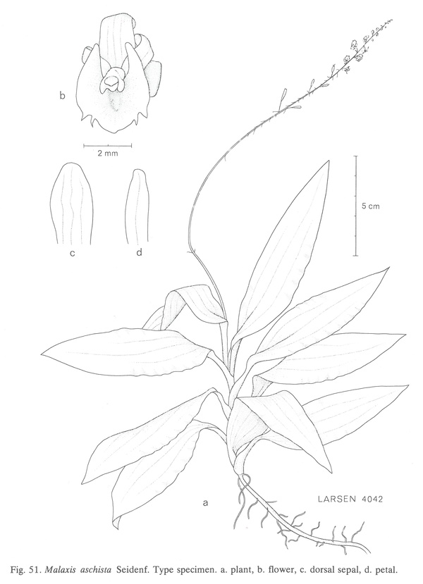 Malaxis aschista Seidenf. 1978 SECTION Commelinodes [Schlechter] Seidenf. Drawing by © Seidenfaden and The Swiss Orchid Foundation at the Jany Renz Herbaria Website