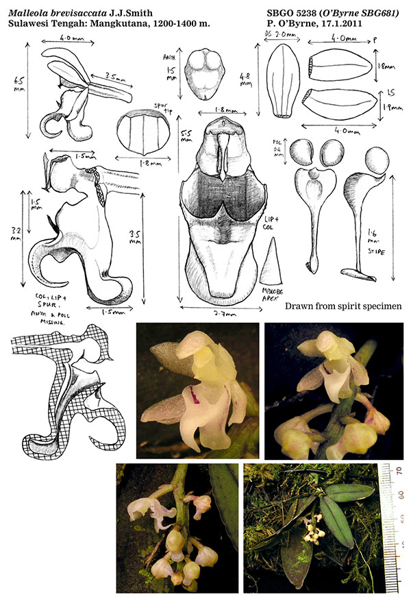 References W3 Tropicos, Kew Monocot list , IPNI ; A to Z of South East Asian Orchid Species Vol 2 O'Byrne 2011 as Malleola brevisaccata photo fide
