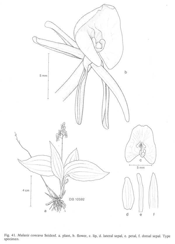 Malaxis concava Seidenf. 1970 SECTION Malaxis Drawing by © Seidenfaden and The Swiss Orchid Foundation at the Jany Renz Herbaria Website