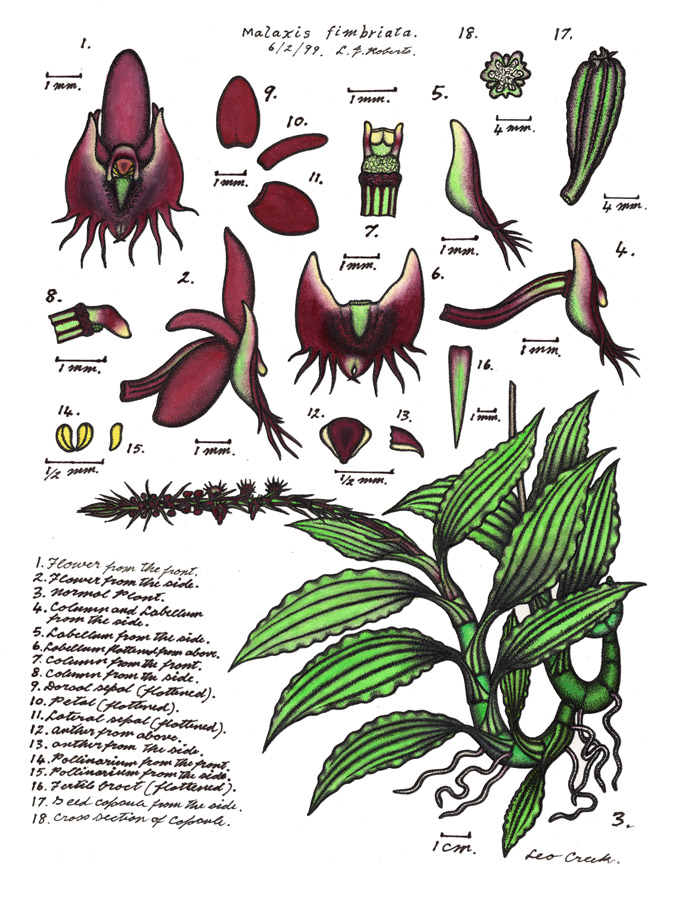 Malaxis fimbriata Lavarack 1981 SECTION CrepidiumDrawing by © Lewis Roberts Wikimedia Website