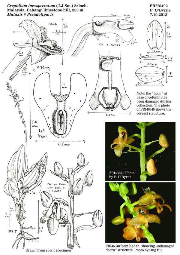 References W3 Tropicos, Kew Monocot list , IPNI ; Orchids of Sumatra J B Comber 2001 without basionym page non invalid as Malaxis inexpectata; Gard. Bull. Singapore 57: 263 - 267 Jutta & Faridah 2005 as M inexpectata drawing fide; Wild Orchids of Penninsular Malaysia O'Byrne, Ong, Yong and Saw 2011 as Malaxis inexpectata photo fide;