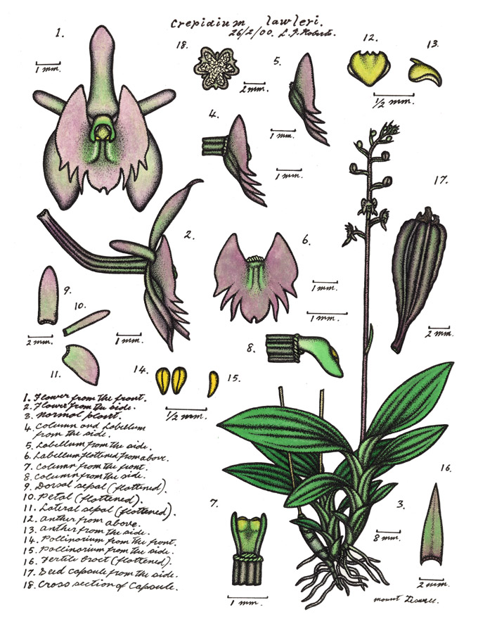 Malaxis lawleri Lavarack & B.Gray 1984 SECTION CrepidiumDrawing by © Lewis Roberts Wikimedia Website