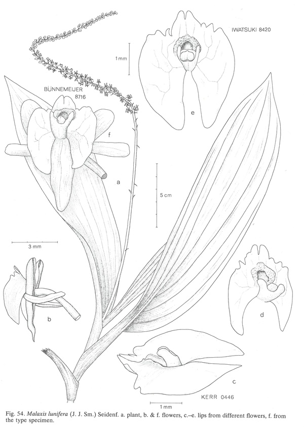 Malaxis lunifera (J.J.Sm.) Seidenf. 1978 SECTION Crepidium Drawing by © Seidenfaden and The Swiss Orchid Foundation at the Jany Renz Herbaria Website