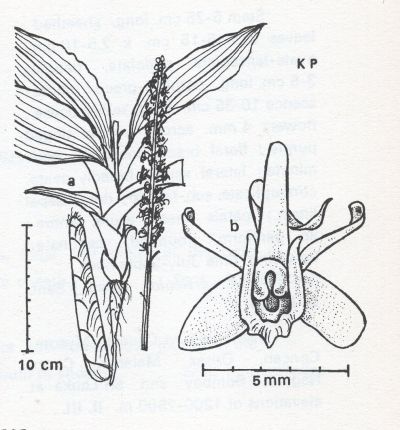 Found in the eastern Himalayas, Sikkim, Assam, and northern Thailand at elevations around 600 to 1400 meters as a small sized, warm to cool growing terrestrial with pseudobulbs carrying lanceolate-ellipitc, acute leaves that blooms in the summer on a terminal, erect, to 12" [30 cm] long, numerous flowered inflorescence with linear-lanceolate floral bracts.
