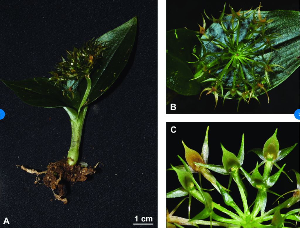 Found in Costa Rica in very wet and pluvial forests at elevations around 800 to 1200 meters as a miniature sized, warm to cool growing terrestrial with pseudobulbs carrying 2, ovate, shortly acuminate, petiolate base, clasping leaves that blooms in the late spring and early summer on a terminal, erect, .6 to .8" [1.5 to 2 cm] long, subumbellate, many flowered inflorescence carrying pale green with chestnut, resupinate flowers.
