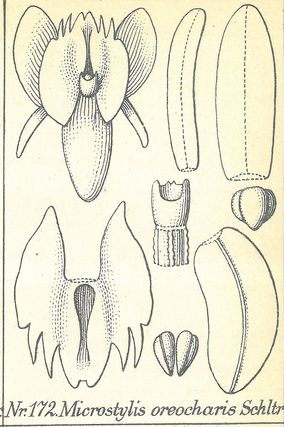 References W3 Tropicos, Kew Monocot list , IPNI ; Orchidaceae of German New Guinea Schlechter 1911 as Microstylis oreocharis Drawing fide; Die Orchideen Band 3 Sonderabdruck aus Schlechter Brieger, Maatsch and Senghas Liferung #13 753 - 819 Liparinae 1983 drawing fide;