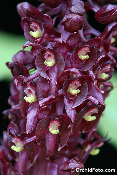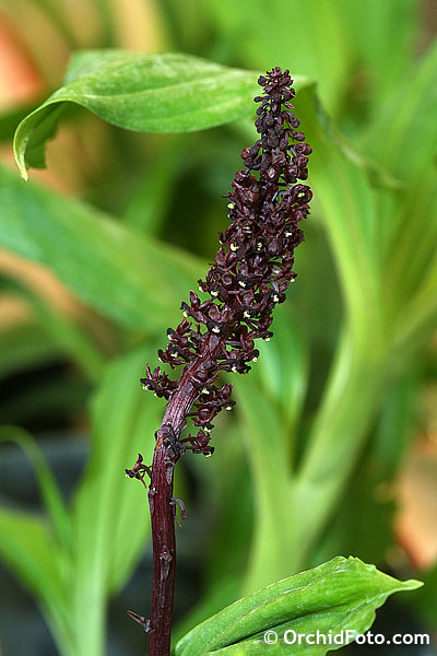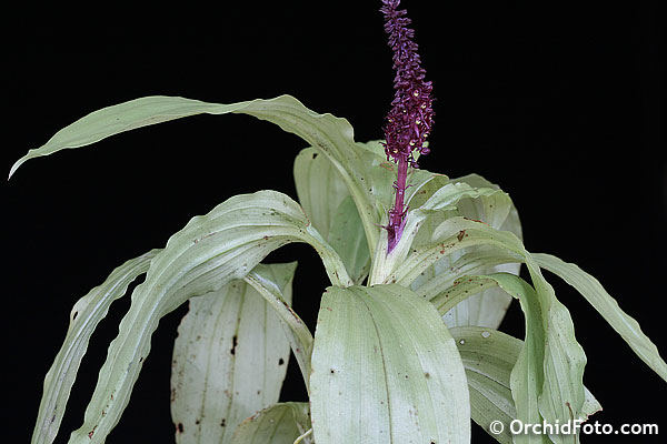Found in Thailand, Malysia, Borneo, Java and Sumatra at elevations of 1000 to 1300 meters as a small sized, coolgrowing terrestrial with a climbing stem carrying several, ovate, acute, gradually narrowing into the elongate, petiolate, clasping base leaves that blooms in the summer and fall on a terminal ,erect, 12" [30 cm] long, simulataneously, semi-densely many flowered inflorescence.