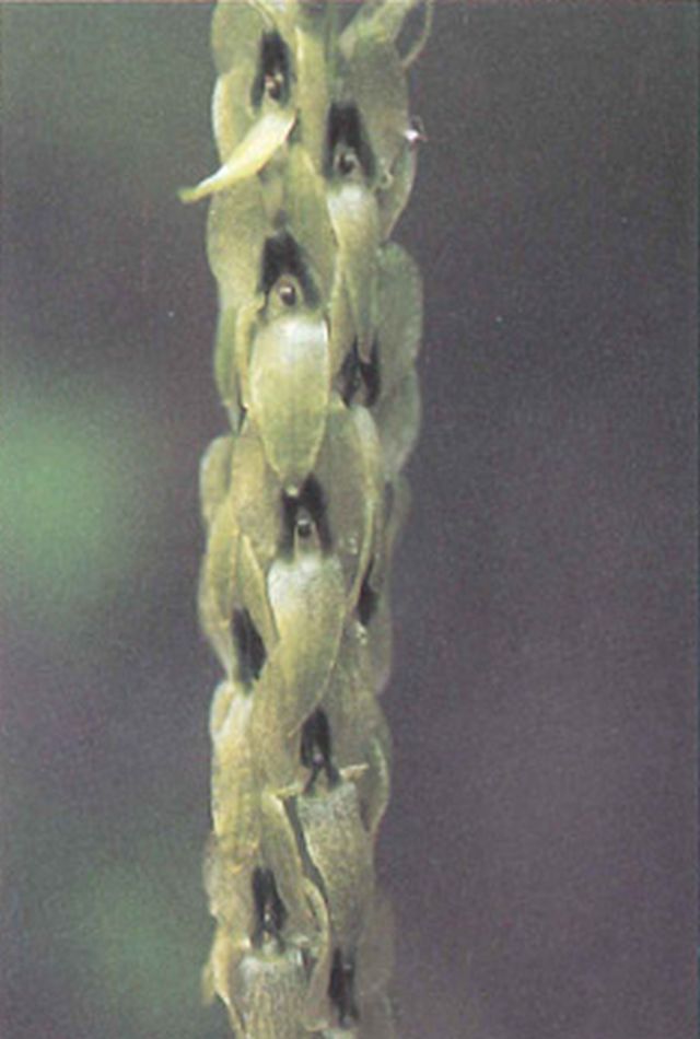 Found in north central, central and southwestern Mexico in pine and pine/oyamel forests at elevations of 2750 to 3000 meters as a small to medium sized, cold growing terrestrial with subterranean, ovoid to globose, whitish pseudobulbs giving rise to an erect 3" [7.5 cm] long stem carrying a single apical, with a tubular vein, narrowly elliptic to lanceolate leaf that blooms in the summer on an erect, peduncle 4" [10 cm] long, rachis to a 2" [5 cm] long, many flowered inflorescence carrying non-resupinate yellow-green flowers.