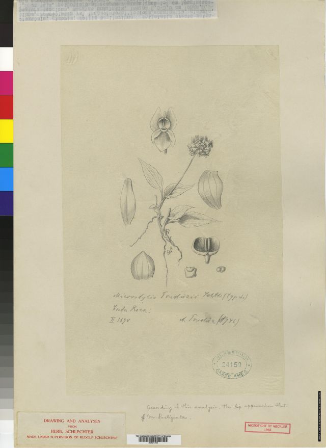 Common Name Tonduz's Malaxis [Swiss Botanist and Orchid Collector in Central America early 1900's]