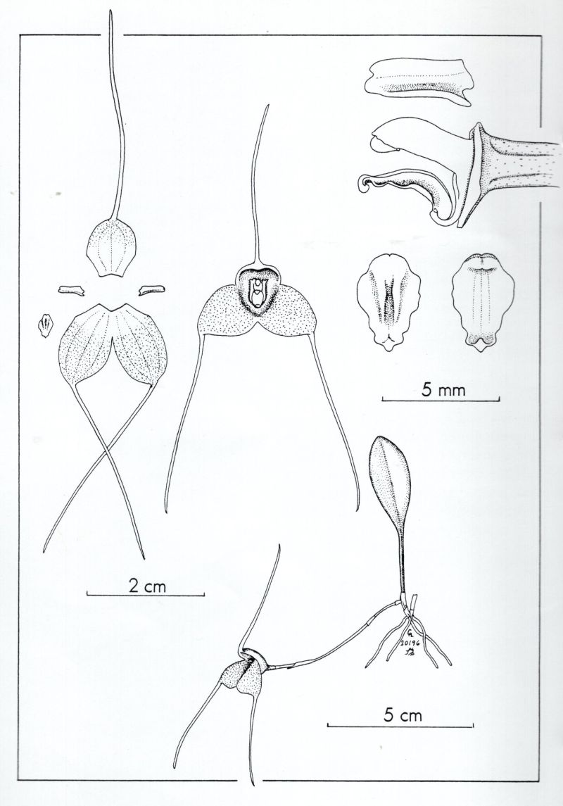 References W3 Tropicos, Kew Monocot list , IPNI ; *Icones Pleurothallidinarum XXV Systematics of Masdevallia Part 5 Luer 2003 drawing fide; Orchidaceae Masdevallia and Affiliates Dodson & Luer 2009 drawing fide; Orchids Masdevallia with its segregates including Dracula Zelenko 2014 photo fide;