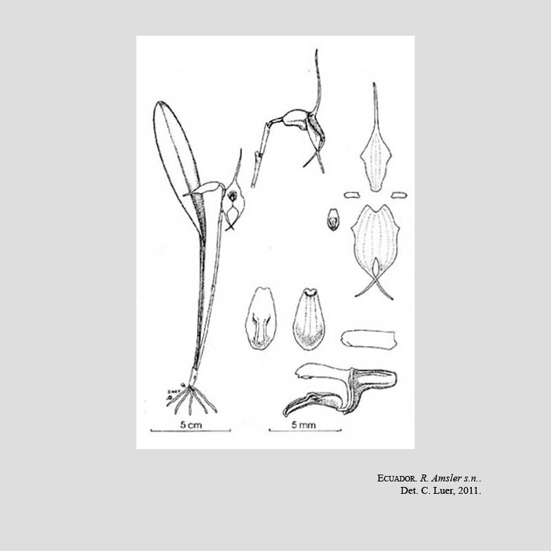 References W3 Tropicos, Kew Monocot list , IPNI ; Harvard Pap. Bot. 16(2): 317 Luer & Jenny 2011 as Alaticaulia amsleri; *Internet Orchid Species Photo Encyclopedia 2014 drawing fide;