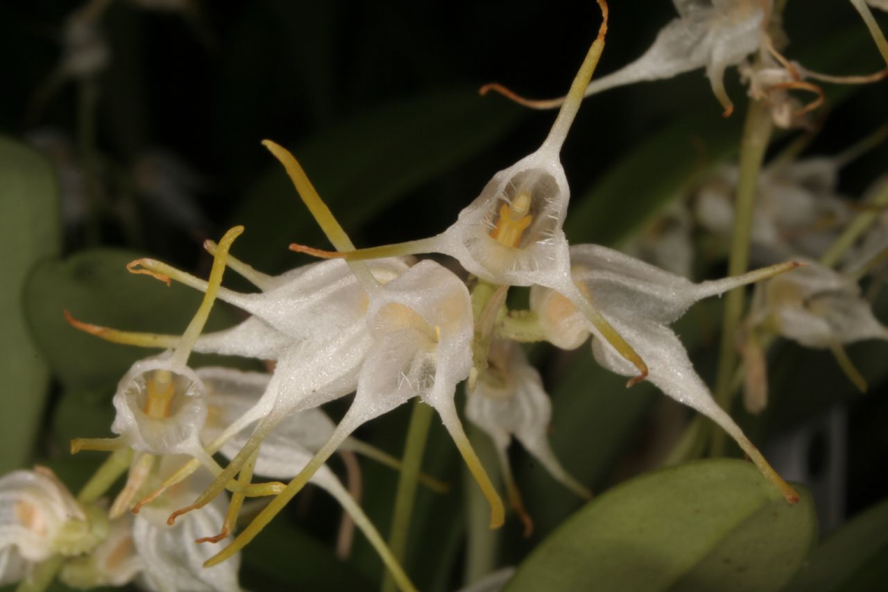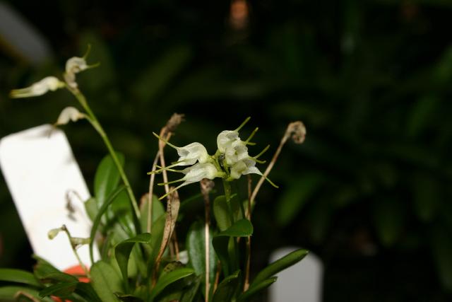 Found only in west central Ecuador in cloud forests at elevations of 2000 to 2500 meters as a mini-miniature sized, cold growing epiphyte with erect, slender, fasiculate ramicauls enveloped basally by 2 to 3 loose, tubular sheaths and carrying an apical, erect to suberect, coriaceous, petiolate, elliptical leaf that is cuneate below into the slender petiole and blooms in the winter and spring on an erect, simultaneously few flowered, racemose, 2.8" [7 cm] long, slender inflorescence arising from low on the ramicaul and having a close bract below the middle and inflated floral bract.