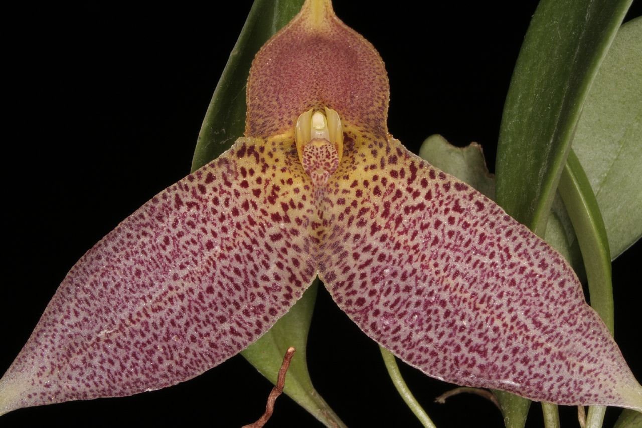 Found Ecuador and Peru in cloud forests at elevations of 1000 to 2500 meters as a mini-miniature sized, cool to cold growing epiphyte with a blackish, slender, erect ramicaul enveloped basally by 2 to 3 tubular sheaths carrying a single, apical, erect, coriaceous, elliptical, obtuse to rounded leaf that is cuneate below into the petiole and blooms in the winter on a slender, suberect, 2 to 2 1/4" [5 to 6] cm long, erect inflorescence arising from low on the ramicaul with a bract near the base and a floral bract that has a solitary flower held below or just at leaf height.