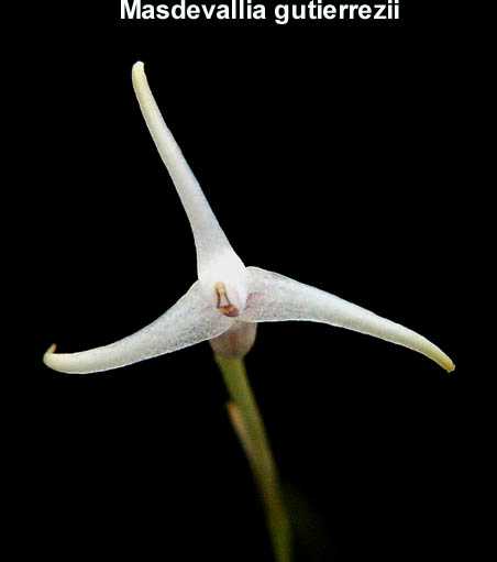 References W3 Tropicos, Kew Monocot list , IPNI ; AOS Bulletin Vol 51 No 3 1982 photo fide; Systematics of Masdevallia Vol 2 Luer 1986; Icones Pleurothallidinarum XXII Systematics of Masdevallia Part 3 Luer 2001 drawing fide; Icones Pleurothallidinarum Vol XXVIII Luer 2006 as Acinopetala gutierrezii; Orchids Masdevallia with its segregates including Dracula Zelenko 2014 photo fide;